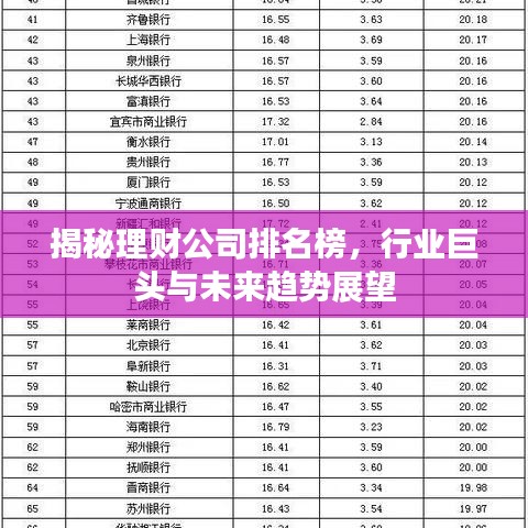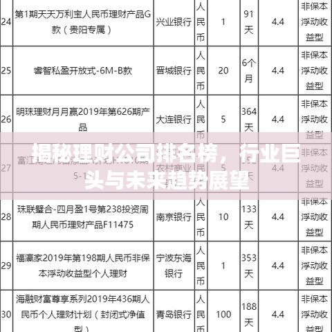 揭秘理財(cái)公司排名榜,行業(yè)巨頭與未來(lái)趨勢(shì)展望