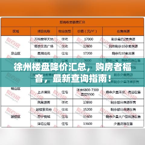 徐州樓盤降價匯總,購房者福音,最新查詢指南!