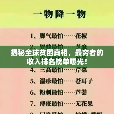 隨著全球經(jīng)濟的發(fā)展,貧富差距日益擴大,世界上最窮的人們的生存狀況令人揪心,他們生活在貧困線上,每天為生存而掙扎,本文將揭示世界上最窮的人收入排名,探尋貧困背后的真相。