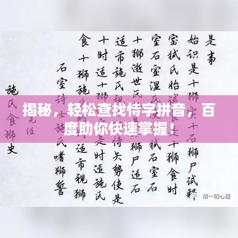 在信息化時代,我們經常需要查找生僻字的讀音和含義,本文將為您揭秘如何輕松使用百度搜索工具“百度一下”來查詢漢字“恃”的拼音,讓您在浩瀚的字海中暢游,輕松掌握每一個字的讀音!