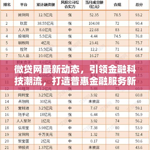 微貸網(wǎng)最新動(dòng)態(tài),引領(lǐng)金融科技潮流,打造普惠金融服務(wù)新體系