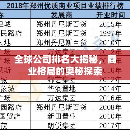 全球公司排名大揭秘,商業(yè)格局的奧秘探索