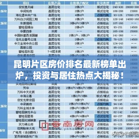 昆明片區(qū)房價(jià)排名最新榜單出爐,投資與居住熱點(diǎn)大揭秘!