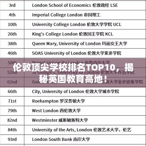 根據(jù)最新的教育評估、學術成績和學生滿意度等數(shù)據(jù),以下是倫敦排名前十名的學校: